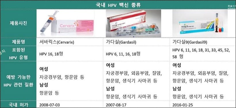 6형, 11형, 16형, 18형, 31형, 33형, 45형, 52형, 58형 예방