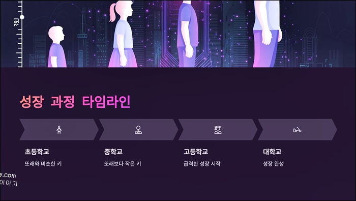 마지막으로, 초등학교~중학교 시절엔 키에 대한 스트레스를 많이 받지만, 고등학교 이후 갑자기 성장하는 경우가 많습니다. (고등학교 이후 즉 뒤늦은 성장이 포인트입니다.)