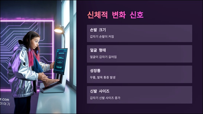 A. 후기에서 손발이 커지거나 성장통이 심해지는 시기에 키가 컸다는 사례가 많으니, 성장의 신호일 수 있습니다.