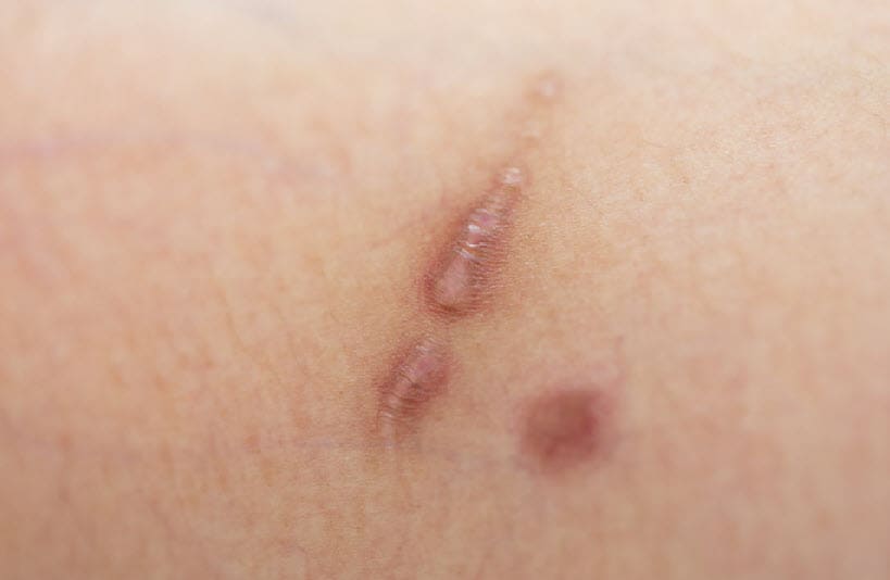 비후성반흔은 흉터로 인해 피부가 붉어지거나 핑크빛으로 남게 되는 경우로 멜라닌 색소의 감소로 하얗게 보일 수 있습니다. 신체 부위 중에서는 주로 가슴이나 어깨, 목, 등, 목 등에서 잘 나타나는 경향이 있습니다.
