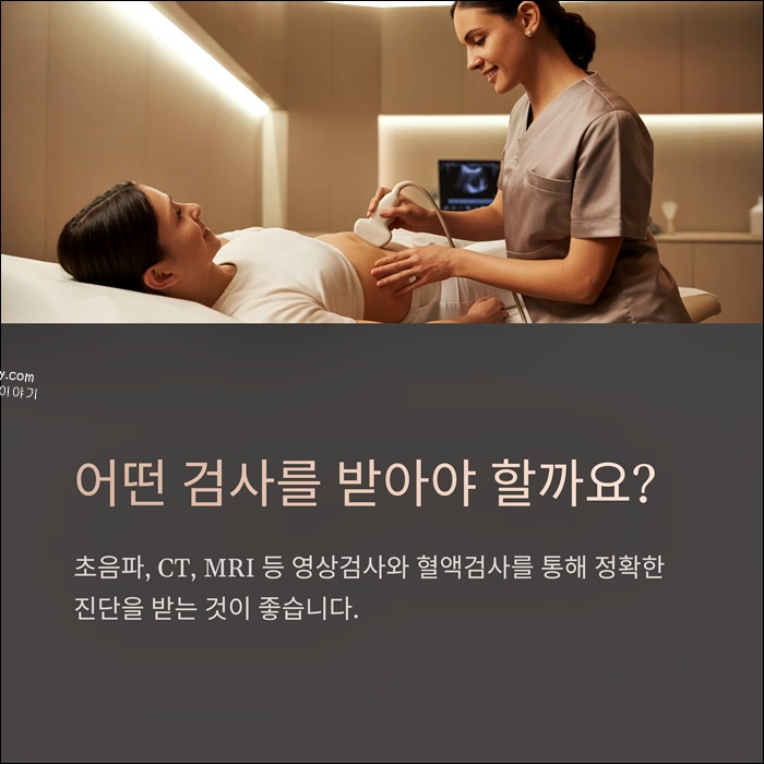 A. 초음파, CT, MRI 등 영상검사와 혈액검사를 통해 정확한 진단을 받는 것이 좋습니다.