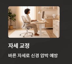 - 자세 교정: 바른 자세를 유지하고, 장시간 스마트폰·컴퓨터 사용 시 목을 앞으로 내밀지 않도록 주의합니다.