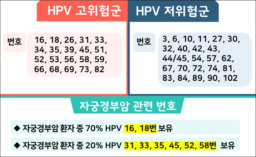 6형, 11형, 16형, 18형, 31형, 33형, 45형, 52형, 58형 예방